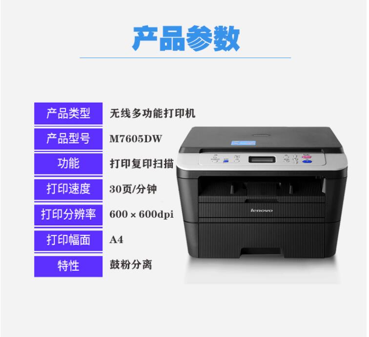 聯(lián)想M7605DW打印機(jī)M7405DWM7400W激光A4多功能一體機(jī)手機(jī)無線WIFI